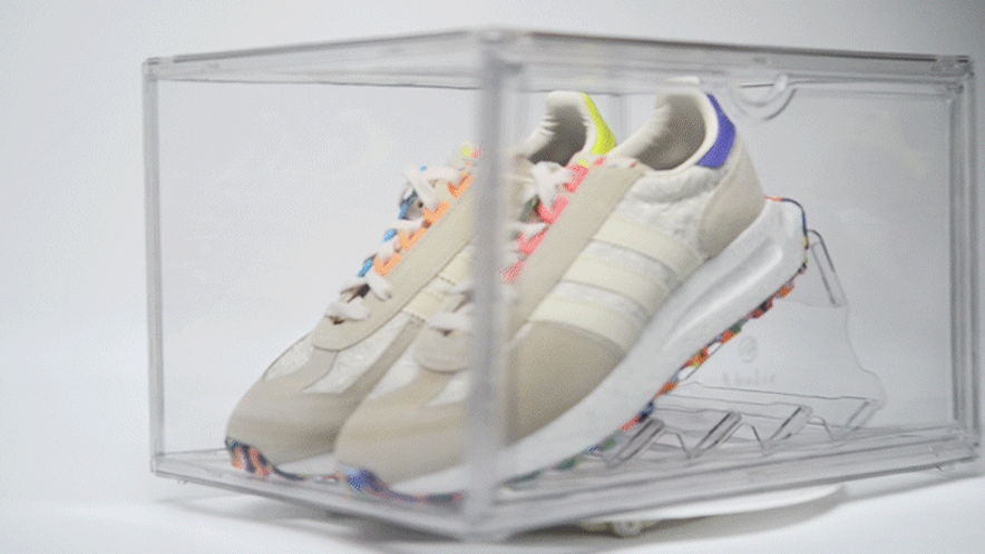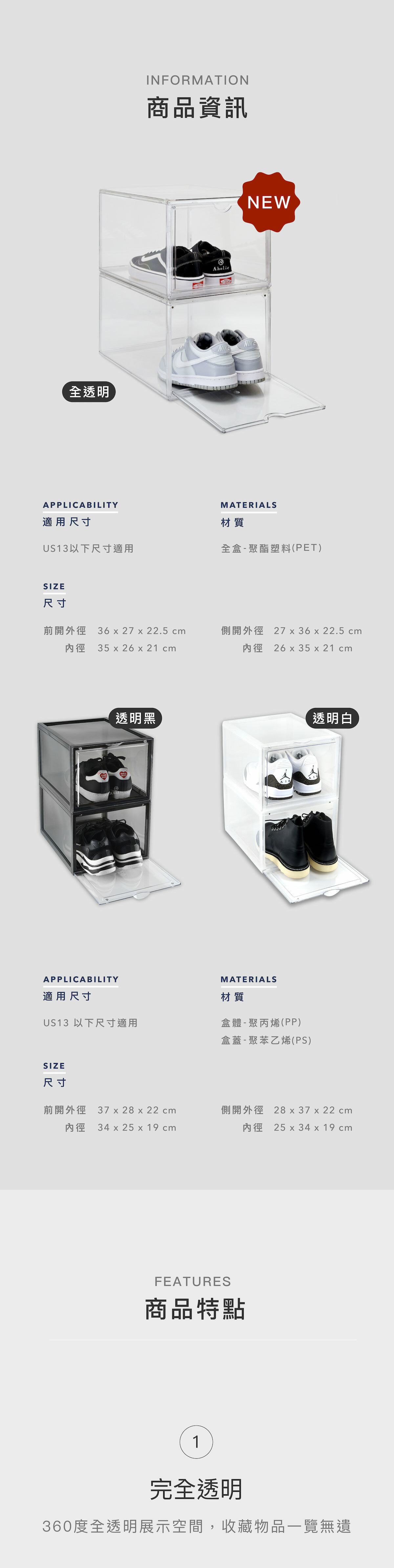 全透明款鞋盒面板若有些微彎曲是由於PET材質特性所致,屬正常現象。