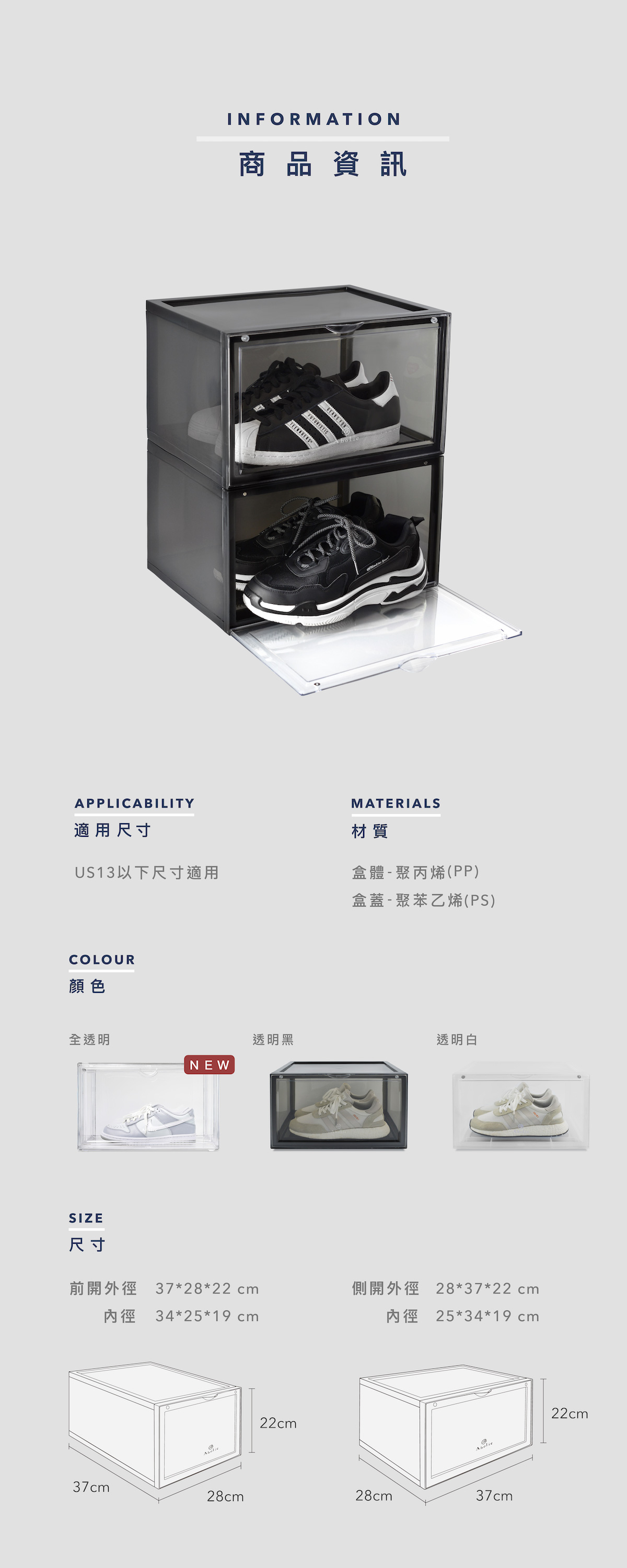 • 抗壓耐用 - 鞋盒加強結構,穩固耐用不變形